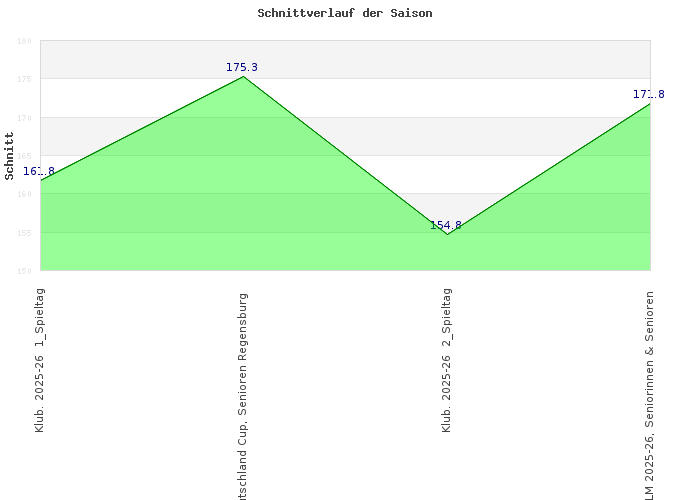Sportjahr: 30.06.2026 Ereignis: Klub. 2025-26 2_Spieltag Pins: 619 Spiele: 4 Datum: 21.09.2025 Sportjahr: 30.06.2026 Spieltag: 2_Spieltag Liga: RL Staffel: 2 Ereignis: Deutschland Cup, Senioren Regensburg Pins: 2104 Spiele: 12 Datum: 10.08.2025 Sportjahr: 30.06.2026 Ereignis: Klub. 2025-26 1_Spieltag Pins: 809 Spiele: 5 Datum: 16.08.2025 Sportjahr: 30.06.2026 Spieltag: 1_Spieltag Liga: RL Staffel: 2 Ereignis: Übertrag Sportjahr 30.06.2025 Pins: 7482 Spiele: 46 Datum: 14.07.2025 Sportjahr: 30.06.2025 Ereignis: Übertrag Sportjahr 30.06.2024 Pins: 13346 Spiele: 79 Datum: 03.08.2024 Sportjahr: 30.06.2024 Ereignis: Übertrag Sportjahr 30.06.2023 Pins: 14110 Spiele: 82 Datum: 22.07.2023 Sportjahr: 30.06.2023 Ereignis: Übertrag Sportjahr 30.06.2022 Pins: 10303 Spiele: 60 Datum: 14.08.2022 Sportjahr: 30.06.2022 Ereignis: Übertrag Sportjahr 30.06.2021 Pins: 5714 Spiele: 32 Datum: 12.07.2021 Sportjahr: 30.06.2021 Ereignis: Übertrag Sportjahr 30.06.2020 Pins: 10388 Spiele: 59 Datum: 09.07.2020 Sportjahr: 30.06.2020 Ereignis: Übertrag Sportjahr 30.06.2019 Pins: 17002 Spiele: 95 Datum: 01.07.2019 Sportjahr: 30.06.2019 Ereignis: Übertrag Sportjahr 30.06.2018 Pins: 18450 Spiele: 102 Datum: 14.07.2018 Sportjahr: 30.06.2018 Ereignis: Übertrag Sportjahr 30.06.2017 Pins: 23087 Spiele: 126 Datum: 08.07.2017 Sportjahr: 30.06.2017 Ereignis: Übertrag Sportjahr 30.06.2016 Pins: 17505 Spiele: 94 Datum: 01.07.2016 Sportjahr: 30.06.2016 Ereignis: Übertrag Sportjahr 30.06.2015 Pins: 19132 Spiele: 105 Datum: 01.07.2015 Sportjahr: 30.06.2015 Ereignis: Übertrag Sportjahr 30.06.2014 Pins: 11199 Spiele: 62 Datum: 01.07.2014 Sportjahr: 30.06.2014 Ereignis: Übertrag Sportjahr 30.06.2013 Pins: 5494 Spiele: 32 Datum: 01.07.2013 Sportjahr: 30.06.2013 Ereignis: Übertrag Sportjahr 30.06.2011 Pins: 2125 Spiele: 12 Datum: 22.07.2011 Sportjahr: 30.06.2011 Ereignis: Übertrag Sportjahr 30.06.2010 Pins: 8474 Spiele: 49 Datum: 07.08.2010 Sportjahr: 30.06.2010