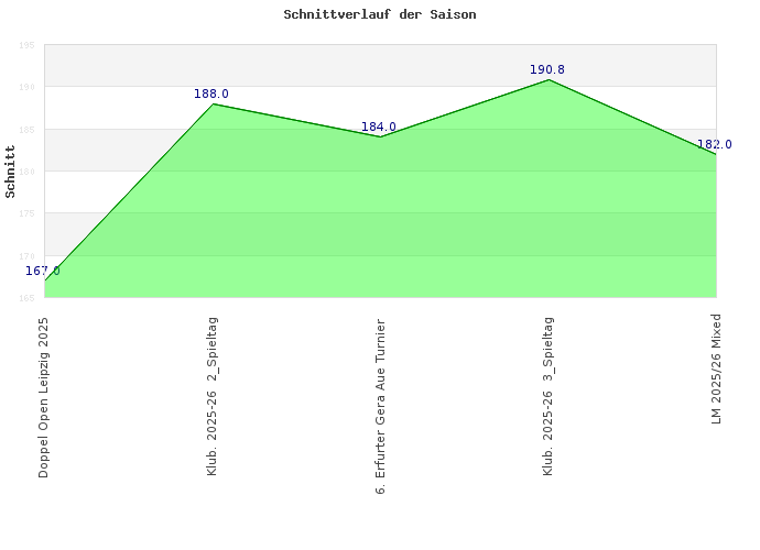 Sportjahr: 30.06.2026 Ereignis: Klub. 2025-26 3_Spieltag Pins: 954 Spiele: 5 Datum: 19.10.2025 Sportjahr: 30.06.2026 Spieltag: 3_Spieltag Liga: SL Staffel: 1 Ereignis: 6. Erfurter Gera Aue Turnier Pins: 2576 Spiele: 14 Datum: 07.09.2025 Sportjahr: 30.06.2026 Ereignis: Klub. 2025-26 2_Spieltag Pins: 940 Spiele: 5 Datum: 21.09.2025 Sportjahr: 30.06.2026 Spieltag: 2_Spieltag Liga: SL Staffel: 1 Ereignis: Doppel Open Leipzig 2025 Pins: 1002 Spiele: 6 Datum: 31.08.2025 Sportjahr: 30.06.2026 Ereignis: Übertrag Sportjahr 30.06.2025 Pins: 13872 Spiele: 77 Datum: 14.07.2025 Sportjahr: 30.06.2025 Ereignis: Übertrag Sportjahr 30.06.2024 Pins: 21124 Spiele: 115 Datum: 03.08.2024 Sportjahr: 30.06.2024 Ereignis: Übertrag Sportjahr 30.06.2023 Pins: 19900 Spiele: 108 Datum: 22.07.2023 Sportjahr: 30.06.2023 Ereignis: Übertrag Sportjahr 30.06.2022 Pins: 22297 Spiele: 117 Datum: 14.08.2022 Sportjahr: 30.06.2022 Ereignis: Übertrag Sportjahr 30.06.2021 Pins: 7193 Spiele: 38 Datum: 12.07.2021 Sportjahr: 30.06.2021 Ereignis: Übertrag Sportjahr 30.06.2020 Pins: 16180 Spiele: 87 Datum: 09.07.2020 Sportjahr: 30.06.2020 Ereignis: Übertrag Sportjahr 30.06.2019 Pins: 32098 Spiele: 174 Datum: 01.07.2019 Sportjahr: 30.06.2019 Ereignis: Übertrag Sportjahr 30.06.2018 Pins: 21231 Spiele: 116 Datum: 14.07.2018 Sportjahr: 30.06.2018 Ereignis: Übertrag Sportjahr 30.06.2017 Pins: 32216 Spiele: 172 Datum: 08.07.2017 Sportjahr: 30.06.2017 Ereignis: Übertrag Sportjahr 30.06.2016 Pins: 22263 Spiele: 120 Datum: 01.07.2016 Sportjahr: 30.06.2016 Ereignis: Übertrag Sportjahr 30.06.2015 Pins: 18393 Spiele: 101 Datum: 01.07.2015 Sportjahr: 30.06.2015 Ereignis: Übertrag Sportjahr 30.06.2014 Pins: 19168 Spiele: 101 Datum: 01.07.2014 Sportjahr: 30.06.2014 Ereignis: Übertrag Sportjahr 30.06.2013 Pins: 11192 Spiele: 63 Datum: 01.07.2013 Sportjahr: 30.06.2013 Ereignis: Übertrag Sportjahr 30.06.2012 Pins: 10781 Spiele: 58 Datum: 01.07.2012 Sportjahr: 30.06.2012 Ereignis: Übertrag Sportjahr 30.06.2011 Pins: 9677 Spiele: 53 Datum: 22.07.2011 Sportjahr: 30.06.2011 Ereignis: Übertrag Sportjahr 30.06.2010 Pins: 9007 Spiele: 52 Datum: 07.08.2010 Sportjahr: 30.06.2010