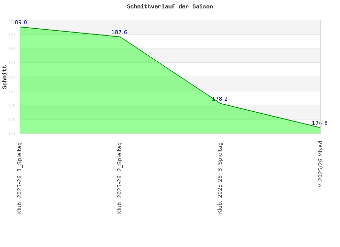 Sportjahr: 30.06.2026 Ereignis: Klub. 2025-26 3_Spieltag Pins: 713 Spiele: 4 Datum: 19.10.2025 Sportjahr: 30.06.2026 Spieltag: 3_Spieltag Liga: SL Staffel: 1 Ereignis: Klub. 2025-26 2_Spieltag Pins: 938 Spiele: 5 Datum: 21.09.2025 Sportjahr: 30.06.2026 Spieltag: 2_Spieltag Liga: SL Staffel: 1 Ereignis: Klub. 2025-26 1_Spieltag Pins: 945 Spiele: 5 Datum: 30.08.2025 Sportjahr: 30.06.2026 Spieltag: 1_Spieltag Liga: SL Staffel: 1 Ereignis: Übertrag Sportjahr 30.06.2025 Pins: 6699 Spiele: 37 Datum: 14.07.2025 Sportjahr: 30.06.2025 Ereignis: Übertrag Sportjahr 30.06.2024 Pins: 12015 Spiele: 61 Datum: 03.08.2024 Sportjahr: 30.06.2024 Ereignis: Übertrag Sportjahr 30.06.2023 Pins: 19868 Spiele: 102 Datum: 22.07.2023 Sportjahr: 30.06.2023 Ereignis: Übertrag Sportjahr 30.06.2022 Pins: 9282 Spiele: 50 Datum: 14.08.2022 Sportjahr: 30.06.2022 Ereignis: Übertrag Sportjahr 30.06.2021 Pins: 3231 Spiele: 17 Datum: 12.07.2021 Sportjahr: 30.06.2021 Ereignis: Übertrag Sportjahr 30.06.2020 Pins: 6972 Spiele: 39 Datum: 09.07.2020 Sportjahr: 30.06.2020 Ereignis: Übertrag Sportjahr 30.06.2019 Pins: 2238 Spiele: 13 Datum: 01.07.2019 Sportjahr: 30.06.2019 Ereignis: Übertrag Sportjahr 30.06.2018 Pins: 14584 Spiele: 79 Datum: 14.07.2018 Sportjahr: 30.06.2018 Ereignis: Übertrag Sportjahr 30.06.2017 Pins: 19621 Spiele: 106 Datum: 08.07.2017 Sportjahr: 30.06.2017 Ereignis: Übertrag Sportjahr 30.06.2016 Pins: 14676 Spiele: 84 Datum: 01.07.2016 Sportjahr: 30.06.2016 Ereignis: Übertrag Sportjahr 30.06.2015 Pins: 7504 Spiele: 47 Datum: 01.07.2015 Sportjahr: 30.06.2015 Ereignis: Übertrag Sportjahr 30.06.2014 Pins: 11554 Spiele: 69 Datum: 01.07.2014 Sportjahr: 30.06.2014 Ereignis: Übertrag Sportjahr 30.06.2013 Pins: 7452 Spiele: 51 Datum: 01.07.2013 Sportjahr: 30.06.2013 Ereignis: Übertrag Sportjahr 30.06.2012 Pins: 7278 Spiele: 55 Datum: 01.07.2012 Sportjahr: 30.06.2012