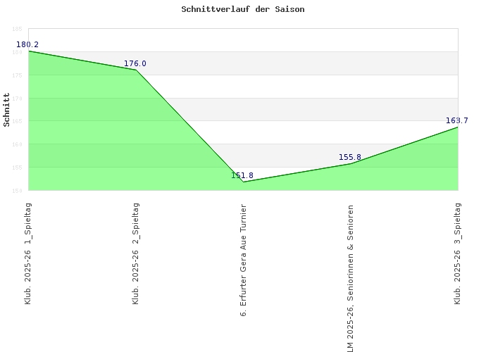 Sportjahr: 30.06.2026 Ereignis: 6. Erfurter Gera Aue Turnier Pins: 911 Spiele: 6 Datum: 07.09.2025 Sportjahr: 30.06.2026 Ereignis: Klub. 2025-26 2_Spieltag Pins: 880 Spiele: 5 Datum: 21.09.2025 Sportjahr: 30.06.2026 Spieltag: 2_Spieltag Liga: SL Staffel: 2 Ereignis: Klub. 2025-26 1_Spieltag Pins: 901 Spiele: 5 Datum: 30.08.2025 Sportjahr: 30.06.2026 Spieltag: 1_Spieltag Liga: SL Staffel: 2 Ereignis: Übertrag Sportjahr 30.06.2025 Pins: 13307 Spiele: 73 Datum: 14.07.2025 Sportjahr: 30.06.2025 Ereignis: Übertrag Sportjahr 30.06.2024 Pins: 10192 Spiele: 58 Datum: 03.08.2024 Sportjahr: 30.06.2024 Ereignis: Übertrag Sportjahr 30.06.2023 Pins: 9245 Spiele: 55 Datum: 22.07.2023 Sportjahr: 30.06.2023 Ereignis: Übertrag Sportjahr 30.06.2022 Pins: 4323 Spiele: 26 Datum: 14.08.2022 Sportjahr: 30.06.2022 Ereignis: Übertrag Sportjahr 30.06.2021 Pins: 2730 Spiele: 16 Datum: 12.07.2021 Sportjahr: 30.06.2021 Ereignis: Übertrag Sportjahr 30.06.2020 Pins: 8916 Spiele: 52 Datum: 09.07.2020 Sportjahr: 30.06.2020 Ereignis: Übertrag Sportjahr 30.06.2019 Pins: 10780 Spiele: 60 Datum: 01.07.2019 Sportjahr: 30.06.2019 Ereignis: Übertrag Sportjahr 30.06.2018 Pins: 7364 Spiele: 42 Datum: 14.07.2018 Sportjahr: 30.06.2018 Ereignis: Übertrag Sportjahr 30.06.2017 Pins: 5129 Spiele: 31 Datum: 08.07.2017 Sportjahr: 30.06.2017 Ereignis: Übertrag Sportjahr 30.06.2016 Pins: 6592 Spiele: 37 Datum: 01.07.2016 Sportjahr: 30.06.2016 Ereignis: Übertrag Sportjahr 30.06.2015 Pins: 7822 Spiele: 44 Datum: 01.07.2015 Sportjahr: 30.06.2015 Ereignis: Übertrag Sportjahr 30.06.2014 Pins: 6140 Spiele: 35 Datum: 01.07.2014 Sportjahr: 30.06.2014 Ereignis: Übertrag Sportjahr 30.06.2013 Pins: 7392 Spiele: 42 Datum: 01.07.2013 Sportjahr: 30.06.2013