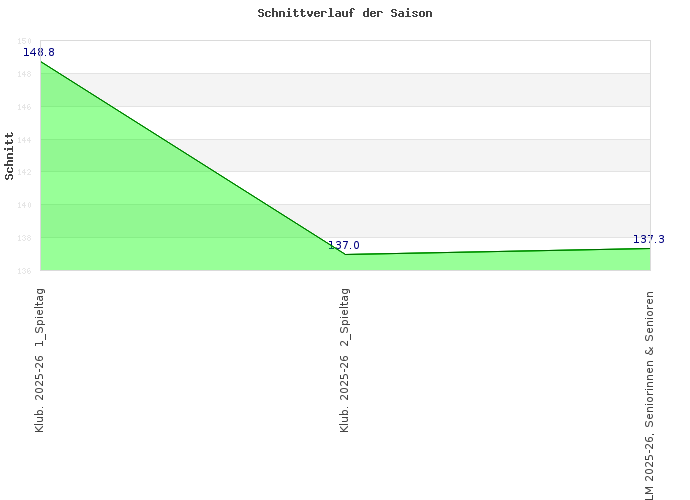 Sportjahr: 30.06.2026 Ereignis: Klub. 2025-26 2_Spieltag Pins: 411 Spiele: 3 Datum: 20.09.2025 Sportjahr: 30.06.2026 Spieltag: 2_Spieltag Liga: KK Staffel: 1 Ereignis: Klub. 2025-26 1_Spieltag Pins: 595 Spiele: 4 Datum: 17.08.2025 Sportjahr: 30.06.2026 Spieltag: 1_Spieltag Liga: KK Staffel: 1 Ereignis: Übertrag Sportjahr 30.06.2025 Pins: 4514 Spiele: 28 Datum: 14.07.2025 Sportjahr: 30.06.2025 Ereignis: Übertrag Sportjahr 30.06.2024 Pins: 7077 Spiele: 45 Datum: 03.08.2024 Sportjahr: 30.06.2024 Ereignis: Übertrag Sportjahr 30.06.2023 Pins: 5808 Spiele: 36 Datum: 22.07.2023 Sportjahr: 30.06.2023 Ereignis: Übertrag Sportjahr 30.06.2022 Pins: 5320 Spiele: 33 Datum: 14.08.2022 Sportjahr: 30.06.2022 Ereignis: Übertrag Sportjahr 30.06.2021 Pins: 1169 Spiele: 8 Datum: 12.07.2021 Sportjahr: 30.06.2021 Ereignis: Übertrag Sportjahr 30.06.2020 Pins: 6127 Spiele: 37 Datum: 09.07.2020 Sportjahr: 30.06.2020 Ereignis: Übertrag Sportjahr 30.06.2019 Pins: 4988 Spiele: 33 Datum: 01.07.2019 Sportjahr: 30.06.2019 Ereignis: Übertrag Sportjahr 30.06.2018 Pins: 6597 Spiele: 46 Datum: 14.07.2018 Sportjahr: 30.06.2018 Ereignis: Übertrag Sportjahr 30.06.2017 Pins: 4837 Spiele: 33 Datum: 08.07.2017 Sportjahr: 30.06.2017 Ereignis: Übertrag Sportjahr 30.06.2016 Pins: 7054 Spiele: 46 Datum: 01.07.2016 Sportjahr: 30.06.2016 Ereignis: Übertrag Sportjahr 30.06.2015 Pins: 7099 Spiele: 44 Datum: 01.07.2015 Sportjahr: 30.06.2015 Ereignis: Übertrag Sportjahr 30.06.2014 Pins: 6256 Spiele: 41 Datum: 01.07.2014 Sportjahr: 30.06.2014