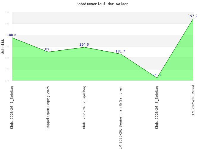 Sportjahr: 30.06.2026 Ereignis: Klub. 2025-26 3_Spieltag Pins: 856 Spiele: 5 Datum: 19.10.2025 Sportjahr: 30.06.2026 Spieltag: 3_Spieltag Liga: RL Staffel: 2 Ereignis: LM 2025-26, Seniorinnen & Senioren Pins: 1090 Spiele: 6 Datum: 05.10.2025 Sportjahr: 30.06.2026 Ereignis: Klub. 2025-26 2_Spieltag Pins: 923 Spiele: 5 Datum: 21.09.2025 Sportjahr: 30.06.2026 Spieltag: 2_Spieltag Liga: RL Staffel: 2 Ereignis: Doppel Open Leipzig 2025 Pins: 1825 Spiele: 10 Datum: 31.08.2025 Sportjahr: 30.06.2026 Ereignis: Klub. 2025-26 1_Spieltag Pins: 944 Spiele: 5 Datum: 16.08.2025 Sportjahr: 30.06.2026 Spieltag: 1_Spieltag Liga: RL Staffel: 2 Ereignis: Übertrag Sportjahr 30.06.2025 Pins: 11550 Spiele: 63 Datum: 14.07.2025 Sportjahr: 30.06.2025 Ereignis: Übertrag Sportjahr 30.06.2024 Pins: 7403 Spiele: 41 Datum: 03.08.2024 Sportjahr: 30.06.2024 Ereignis: Übertrag Sportjahr 30.06.2023 Pins: 5527 Spiele: 29 Datum: 22.07.2023 Sportjahr: 30.06.2023 Ereignis: Übertrag Sportjahr 30.06.2022 Pins: 3729 Spiele: 20 Datum: 14.08.2022 Sportjahr: 30.06.2022 Ereignis: Übertrag Sportjahr 30.06.2020 Pins: 1910 Spiele: 10 Datum: 09.07.2020 Sportjahr: 30.06.2020 Ereignis: Übertrag Sportjahr 30.06.2019 Pins: 1632 Spiele: 9 Datum: 01.07.2019 Sportjahr: 30.06.2019 Ereignis: Übertrag Sportjahr 30.06.2018 Pins: 1845 Spiele: 10 Datum: 14.07.2018 Sportjahr: 30.06.2018